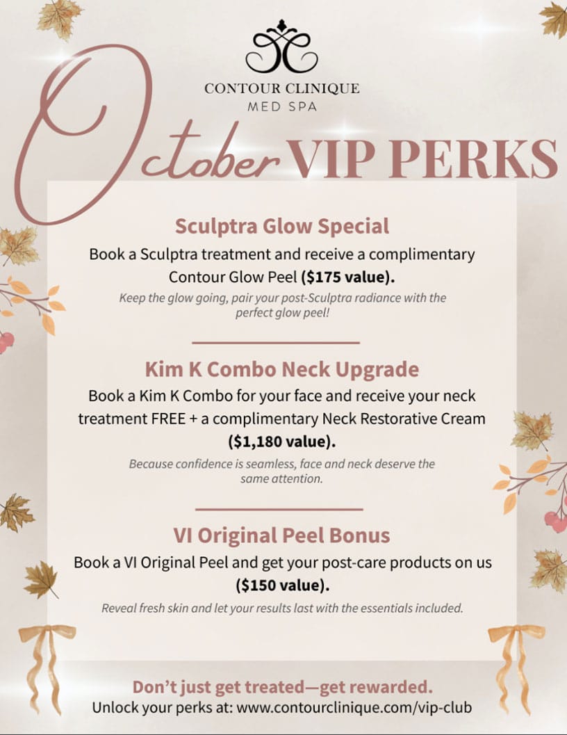 At Contour Clinique Med Spa, your loyalty and dedication to self-care mean the world to us. That’s why we’re delighted to bring you this month’s VIP Perks—exclusively for our valued VIP Club members.